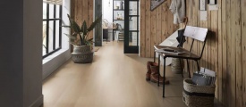 Dankzij de moderne Register Embossing techniek sluit de voelbare structuur naadloos aan op het houtdecor. Samen met de subtiele v-groef rondom en weinig noesten ontstaat een uiterst rustige maar natuurgetrouwe uitstraling die bijna niet van echt hout te onderscheiden is.