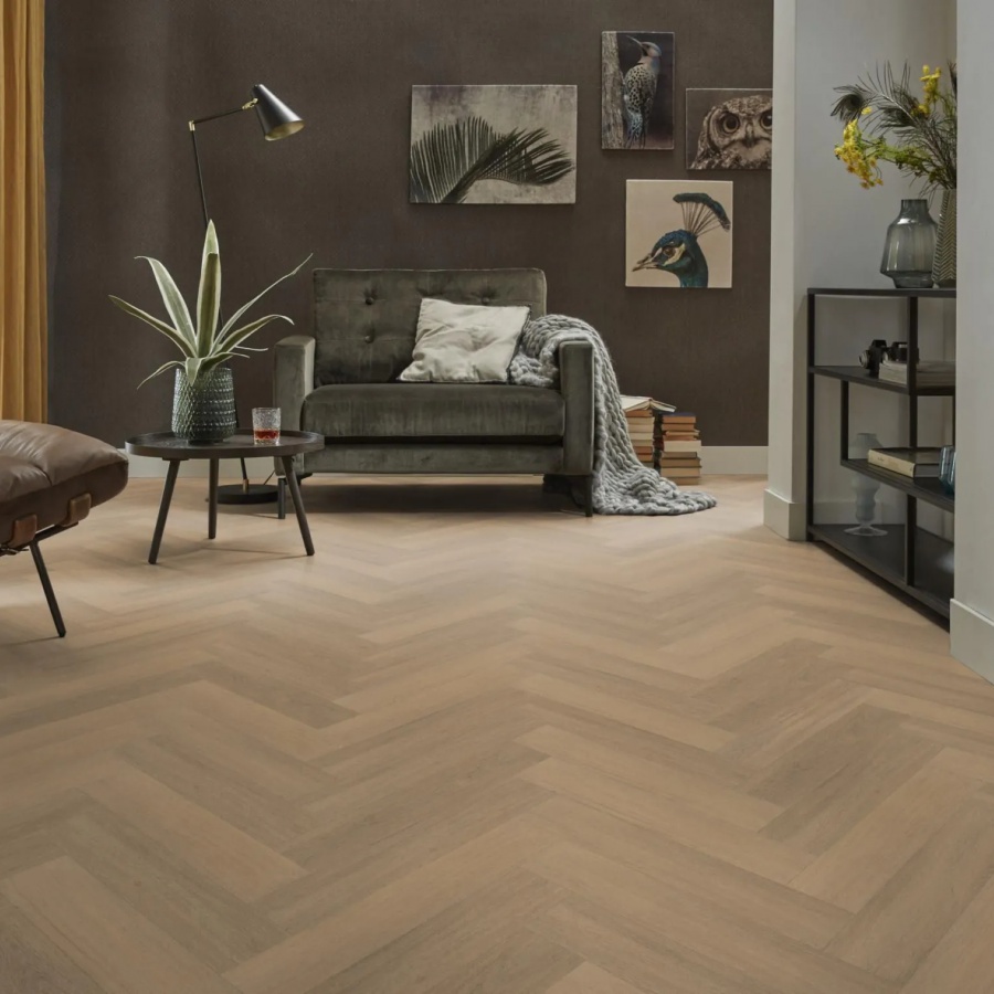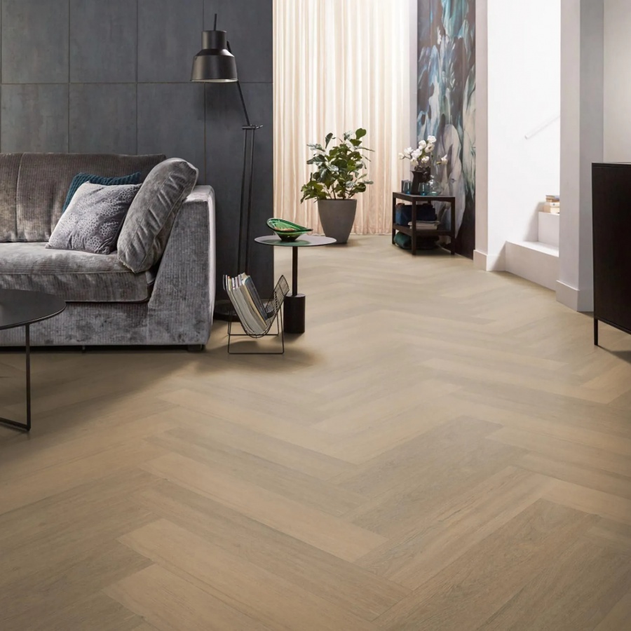 Ambiant Spigato Viranto Visgraat Warm Natural 9030.1503.19 is een grote visgraat (walvisgraat) strook van 76,5 cm x 15,3 cm. De Spigato Viranto Visgraat is een trendy patroon vloer. Het levendige visgraatmotief geeft het interieur een prachtig klassiek karakter.