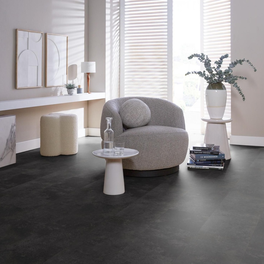 Ambiant Viretto Anthracite 8560.2026.19 PVC tegels zijn 1000 x 250 x 2,5 mm met rondom een v-groef en hebben een matte uitstraling. Voorzien van een toplaag van 0,55 mm. De grote Ambiant Viretto Anthracite betonlook pvc tegels zorgen voor een rustige industriële look.