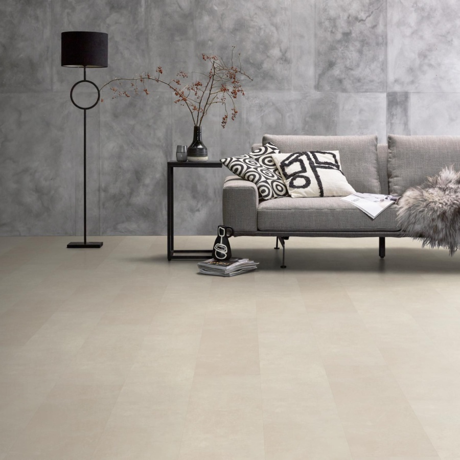 Ambiant Viretto Beige 8560.2021.19 PVC tegels zijn 1000 x 250 x 2,5 mm met rondom een v-groef en hebben een matte uitstraling. Voorzien van een toplaag van 0,55 mm. De grote Ambiant Viretto Beige betonlook pvc tegels zorgen voor een rustige industriële look.