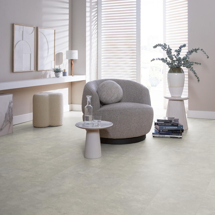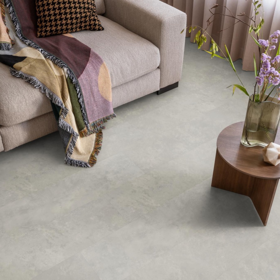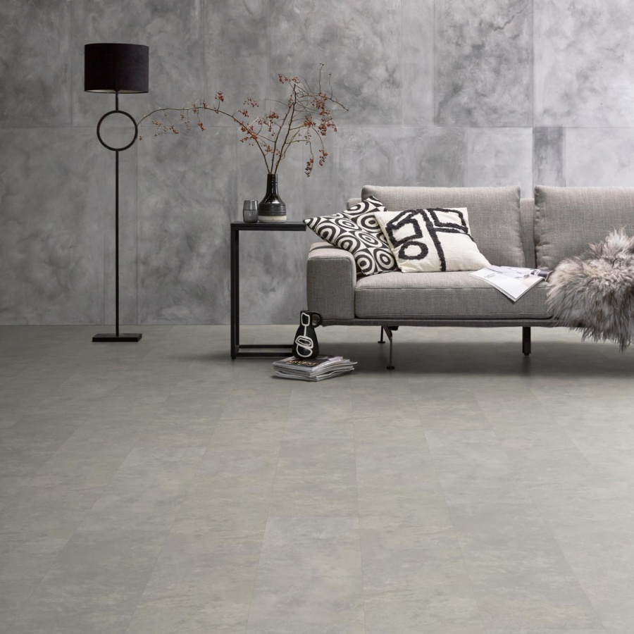 Ambiant Viretto Light Grey 8560.2024.19 PVC tegels zijn 1000 x 250 x 2,5 mm met rondom een v-groef en hebben een matte uitstraling. Voorzien van een toplaag van 0,55 mm. De grote Ambiant Viretto Light Grey betonlook pvc tegels zorgen voor een rustige industriële look.