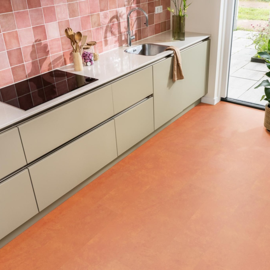 Ambiant Viretto Orange 8560.2027.19 PVC tegels zijn 1000 x 250 x 2,5 mm met rondom een v-groef en hebben een matte uitstraling. Voorzien van een toplaag van 0,55 mm. De grote Ambiant Viretto Orange betonlook pvc tegels zorgen voor een rustige industriële look.
