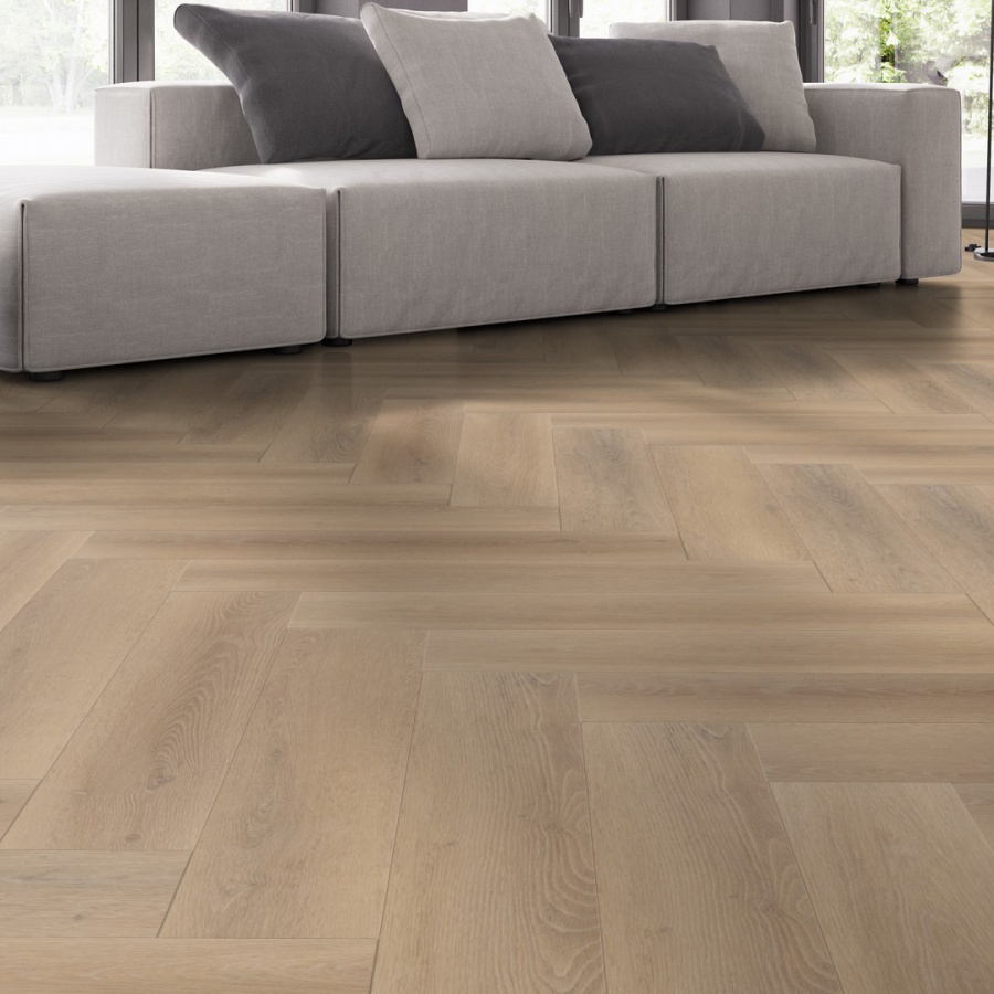 De Belakos Palazzo Visgraat XL 76 is een elegante plak PVC vloer met klassiek visgraatpatroon. De stroken van 77 x 15,3 cm hebben een natuurgetrouwe houtstructuur en subtiele micro v-groef, waardoor de vloer nauwelijks van echt hout te onderscheiden is. De 0,55 mm slijtlaag biedt uitstekende bescherming en maakt de vloer geschikt voor intensief gebruik.