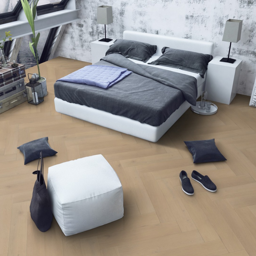 De Belakos Palazzo Visgraat XL strokenn hebben een slijtlaag van 0,55mm en een voelbare structuur die voorzien zijn van een 4-zijdige micro v-groef waardoor elk strookje afzonderlijk benadrukt wordt! Het is ook mogelijk om een visgraat vloer te voorzien van een 'band met bies' zodat het een traditionele parketvloer lijkt.