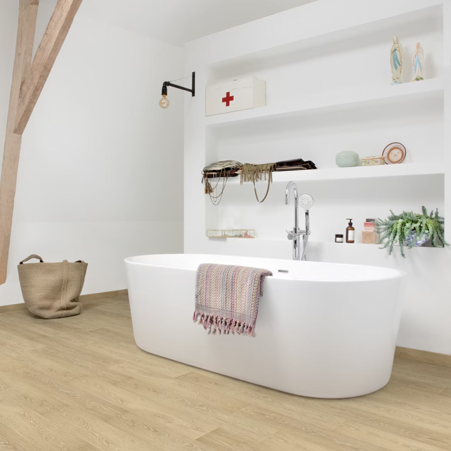 Floorify Blush FG006 is een PLAK PVC vloer met stroken van 1524x225X2.5 mm.