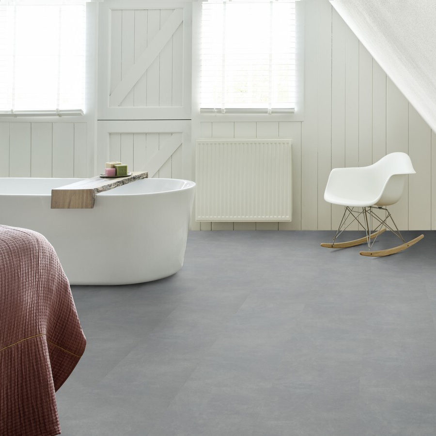 Moduleo Roots Azuriet is een strak afgewerkte pvc tegel (steenlook) in plak pvc (dryback). Door de dunne opbouw is deze vloer ideaal voor renovatie en een stabiele, stille basis.