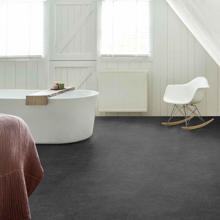 Moduleo Roots Azuriet is een strak afgewerkte pvc tegel (steenlook) in plak pvc (dryback). Door de dunne opbouw is deze vloer ideaal voor renovatie en een stabiele, stille basis.