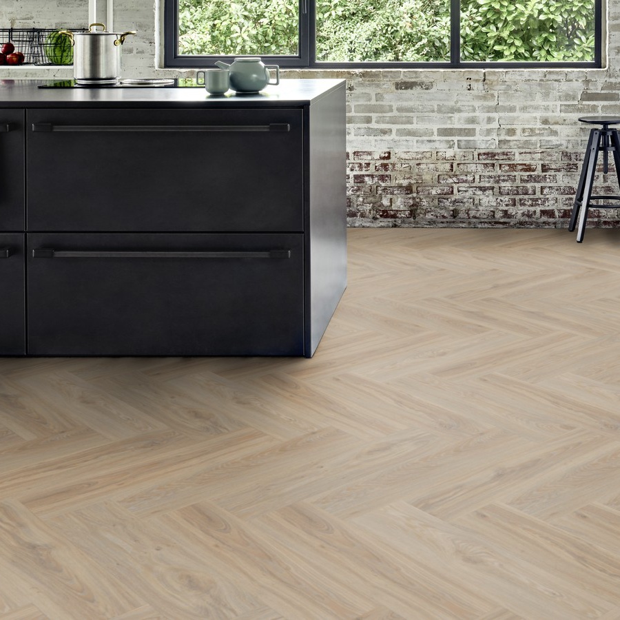 Moduleo Roots Visgraat Blackjack Oak is een strak afgewerkte visgraat in plak pvc (dryback). Door de dunne opbouw is deze vloer ideaal voor renovatie en een stabiele, stille basis.