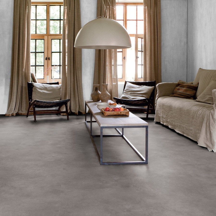 QuickStep Blush Cement Antraciet PVC tegels van 61 cm x 61 cm hebben een matte uitstraling. De Blush Cement Antraciet PVC tegels zijn voorzien van een micro v-groef rondom.
