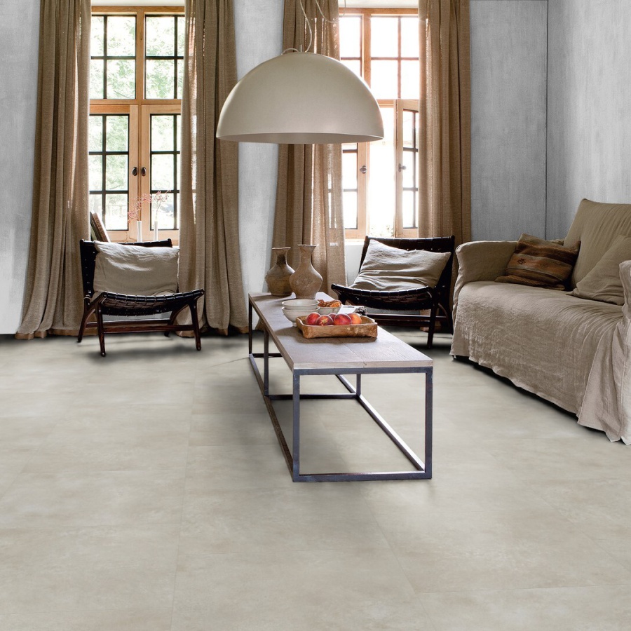 QuickStep Blush Cement Warm Beige PVC tegels van 61 cm x 61 cm hebben een matte uitstraling. De Blush Cement Warm Beige PVC tegels zijn voorzien van een micro v-groef rondom.