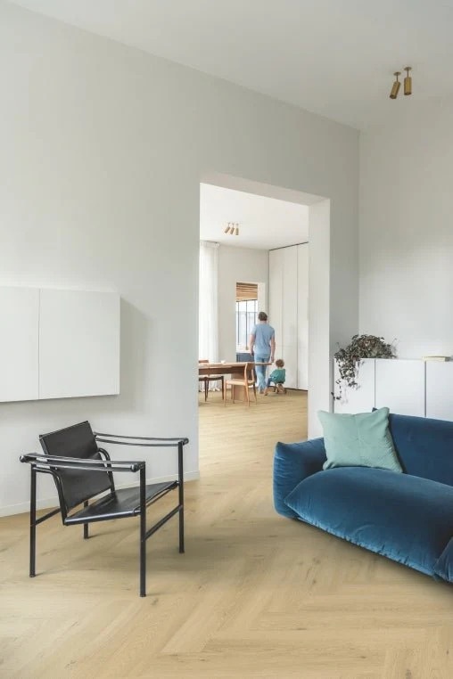 QuickStep Pristine Visgraat is een echte blikvanger in huis. Visgraat vloeren worden al eeuwen gelegd en is tot op de dag van vandaag niets aan populariteit verloren. Deze vloer past in verschillende woonstijlen, is goed te combineren met een modern alsook met een klassieke inrichting. De stroken zijn 75cm x 15cm. Deze grootte zorgt voor een rustig geheel.