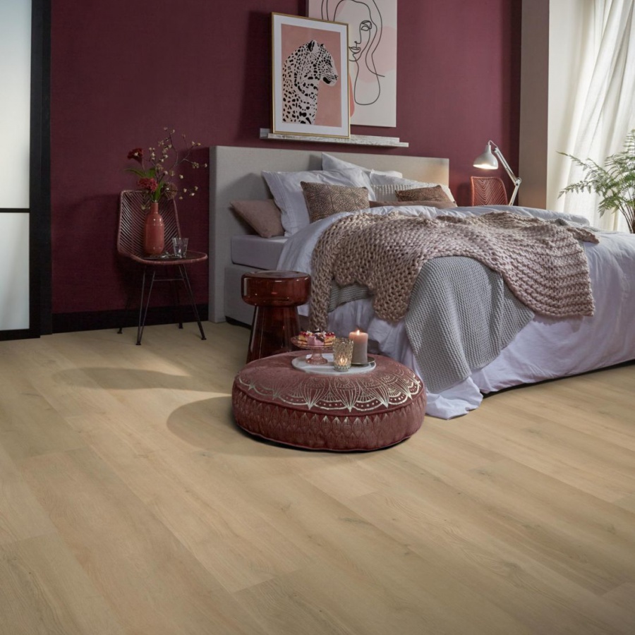 De geïntegreerde 1,5 mm IXPE onderlaag voldoet aan de 10 dB geluidsnorm, waardoor de vloer geschikt is voor appartementen en bovenwoningen.