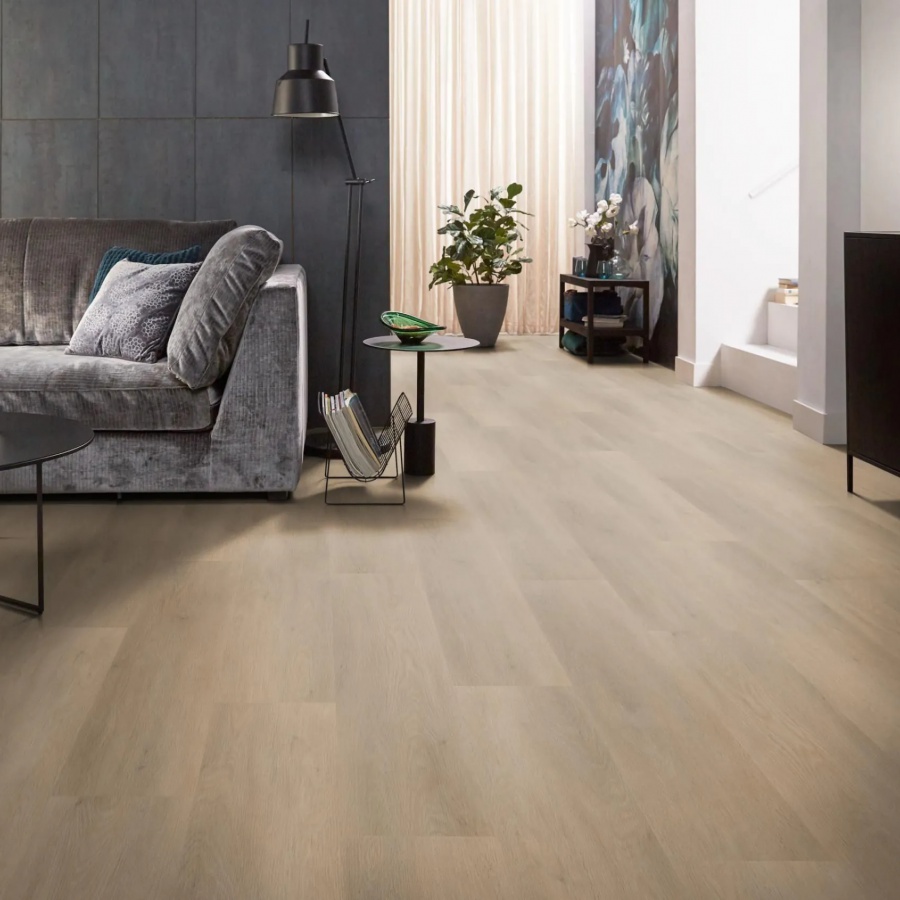 Ambiant Sentima Click Beige 6012.8411.19 is een click PVC vloer op een rigid-core drager van 4 mm dik en voorzien van een 0,3 mm slijtlaag. De click stroken van de Sentima Click zijn 121,9 cm lang en 22,9 cm breed.