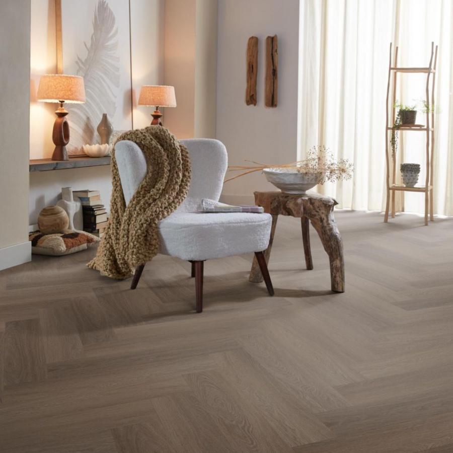 Met het handige click-systeem is de Ambiant Spigato Estino Visgraat Click Brown eenvoudig zelf te leggen en geniet u snel van een prachtige, duurzame vloer die jarenlang meegaat.
