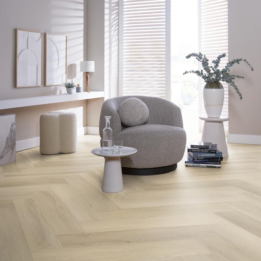 De Ambiant Spigato Marento Visgraat Click Warm Oak is een elegante visgraat click PVC-vloer met realistische houtlook. Dankzij het eenvoudige click-systeem legt u de vloer snel en strak, zonder lijm. Met de geïntegreerde 10 dB ondervloer is hij stil in gebruik en ideaal voor appartementen of bovenwoningen.