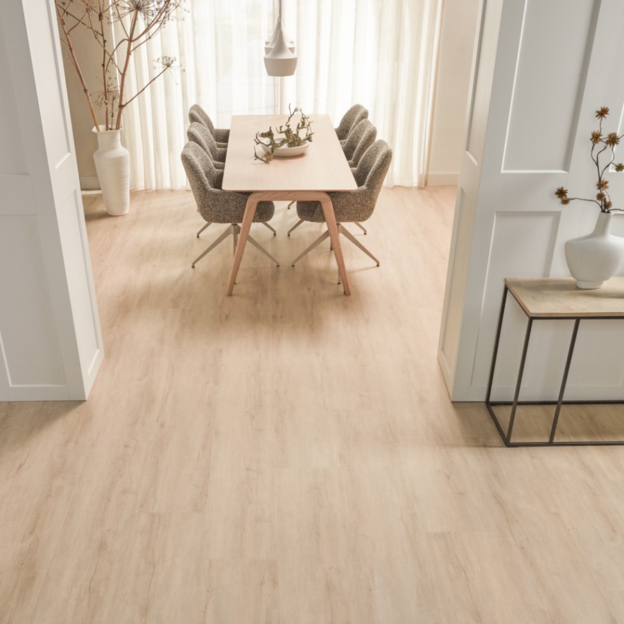 De Floer Landhuis Click PVC Creme Eik FLR-3755 is een luxe click PVC vloer met 30,5 x 150 cm planken, een rigid-core drager en 0,55 mm slijtlaag. De voelbare houtstructuur en matte afwerking zorgen voor een natuurlijke uitstraling. Let op: een geschikte ondervloer zoals de Floer FLR-9013 is vereist. U profiteert van 5 % gratis snijverlies bij bestellingen vanaf 35 m².