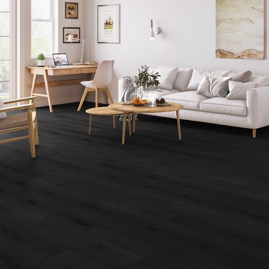 De Gelasta Firmfit Silent Click Summerfield Charcoal 7701 is een PVC strook van 61.2 cm x 15,3 cm x 2,5 mm dik uitgevoerd met een 0,55 mm slijtlaag en voorzien van een microvelling rondom de stroken. Dit is een dry-back PVC vloer die verlijmd gelegd moet worden. Deze vloer is waterbestendig, geschikt voor vloerverwarming en vloerkoeling en kan tegen een stootje!
