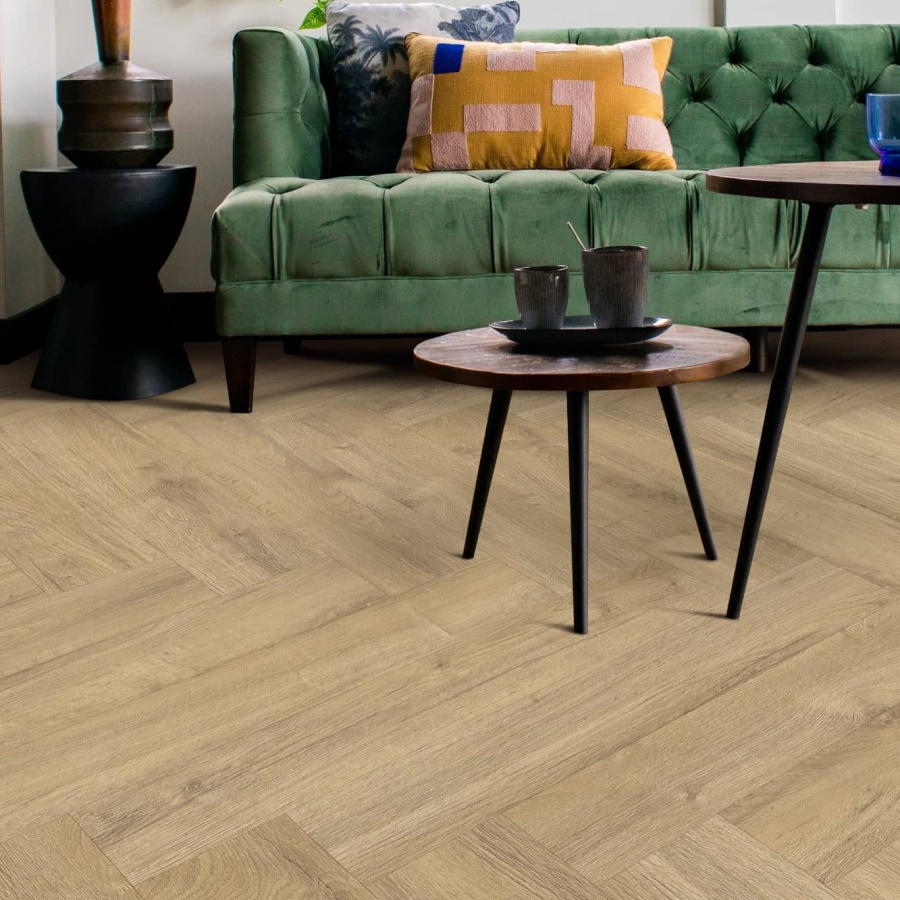 Er zijn 4 kleuren Oakland visgraat Click in de afmeting 73.5cm x 14.7cm x 6mm leverbaar.