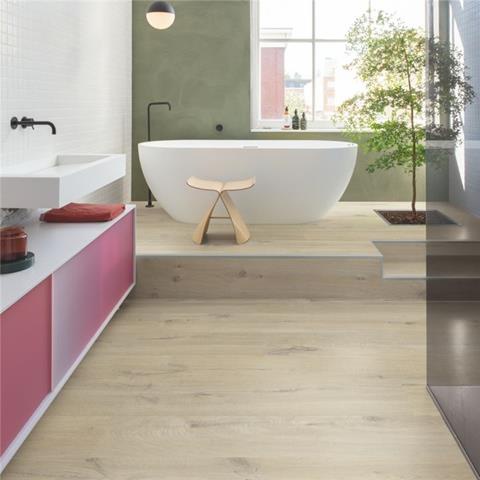 QuickStep Bloom Katoen Eik Beige AVMPU40103 is een rigid click pvc van 1494x209x5 mm. Deze Katoen Eik Beige uit de Bloom collectie is eenvoudig zelf te leggen. Deze vloer is voorzien van een aangehechte onderlaag zodat een extra ondervloer niet meer nodig is. Deze vloer is geschikt voor vloerverwarming/vloerkoeling en heeft een 10 dB demping voor gebruik in appartementen.