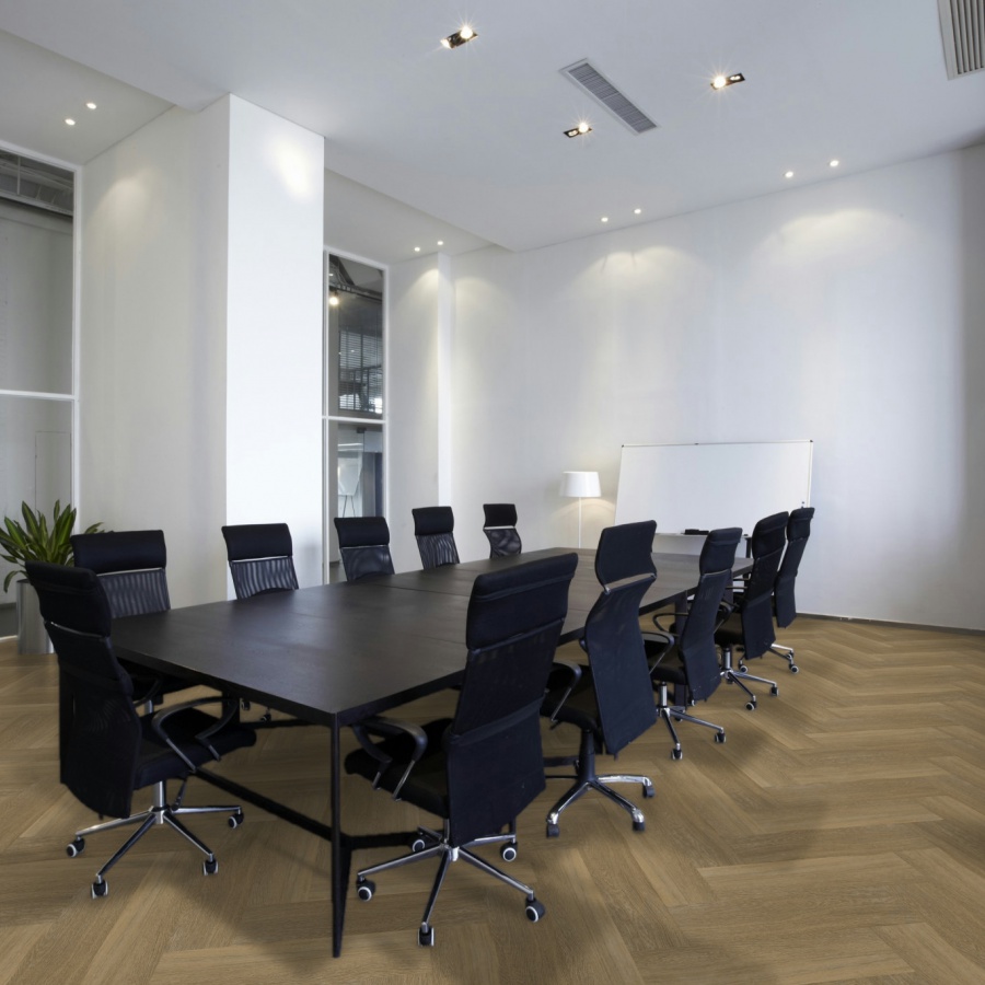 Therdex 6044 uit de Herringbone Chevron collectie is een rustige visgraat vloer met in register geperst (EIR) (zichtbare en voelbare structuur) . De afmeting 60.96 x 15.25 cm is speciaal ontwikkeld om in visgraat- of blokpatroon motief te leggen.