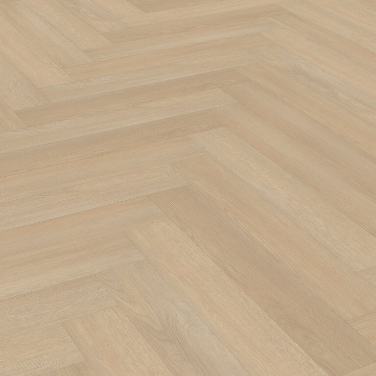Technisch zit het goed: een stabiele opbouw, geschikt voor intensief gebruik en probleemloos te combineren met vloerverwarming. Het royale visgraatformaat (circa 914 mm × 152 mm) benadrukt het rustige karakter.